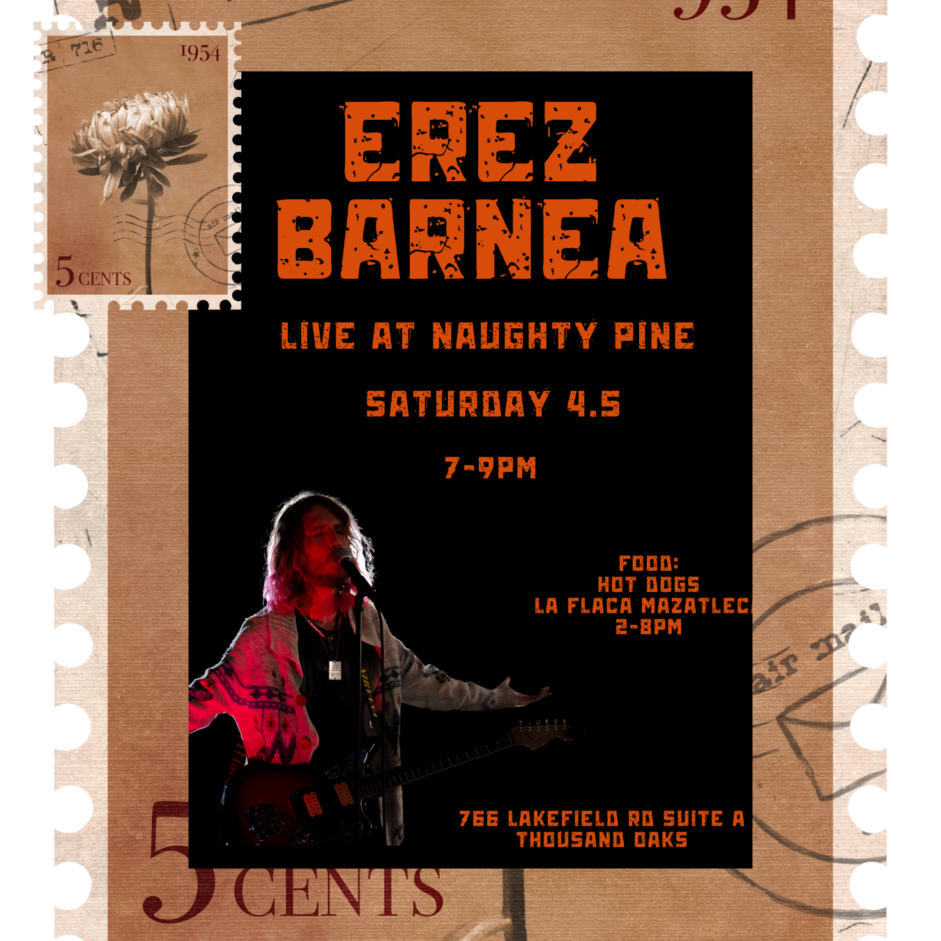 Solo acoustic show with singer/songwriter Erez Barnea play 90’s-2000’s covers as well as original songs.