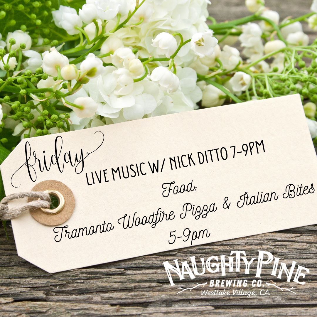 NICK DITTO Friday, May 16, 2025 7:00 PM 9:00 PM Naughty Pine Brewing Co. 766 Lakefield Dr., Ste A Westlake Village, CA 91361 United State of America (map) Google Calendar ICS